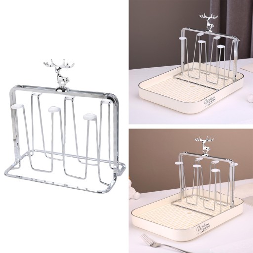 [Łatwy do przenoszenia]: Stojak na suszarkę do butelek ma uchwyt w kształcie jelenia, który można dowolnie przesuwać. Stojak i tacę można oddzielić w celu użycia.