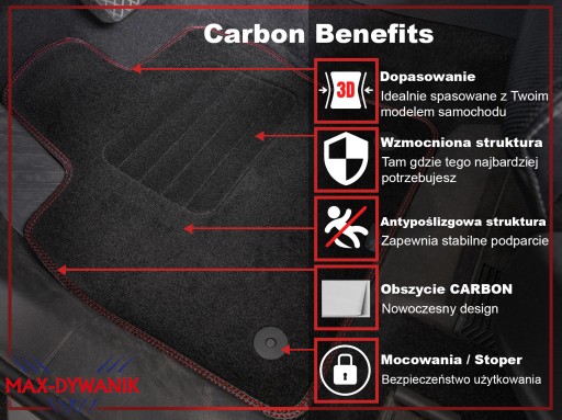 Jeśli szukasz doskonałego połączenia stylu, funkcjonalności i jakości, dywaniki obszyte tasiemką carbonową od MAX-DYWANIK są idealnym rozwiązaniem. Pozwól sobie na luksus i podkreśl wyjątkowość swojego wnętrza.