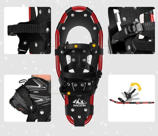 W pełni regulowane: Wiązania z podwójną zapadką pasują do szerokiej gamy stylów i rozmiarów butów zimowych, co wymaga szybkiego pociągnięcia pasków i regulacji pięty. Co więcej, pasek na pięcie i aluminiowe zęby raków zapewniają lepszą przyczepność i wygodę na ubitym śniegu i umiarkowanym terenie, który doskonale nadaje się do zimowych wędrówek po szlakach i lesie.
