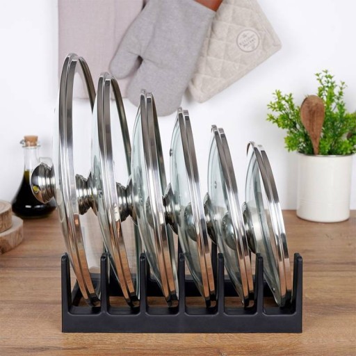 Подставка, крышки, тарелки, кухонный органайзер, черный