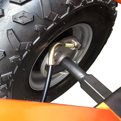 Frezarka posiada dźwignię hamulca tarczowego. Służy ona do zablokowania jednego koła podczas frezowania. Dzięki takiemu rozwiązaniu maszyna nie ucieka nam podczas pracy oraz zapewnia równe prowadzenie po pniu.
