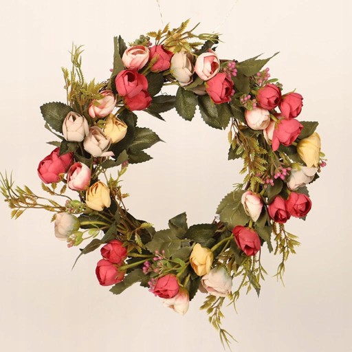 Sztuczny wieniec z róż Wieniec na drzwi z kwiatami