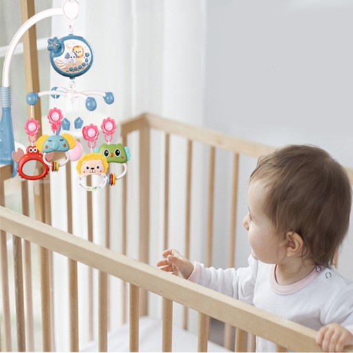 ⏩ Karuzela posiada pałąk, który bez problemu można przymocować do łóżeczka dzięki regulowanemu mocowaniu. Sprawdzi się również przy łóżeczkach turystycznych, dzięki czemu możesz śmiało zabrać ją ze sobą na wakacje.