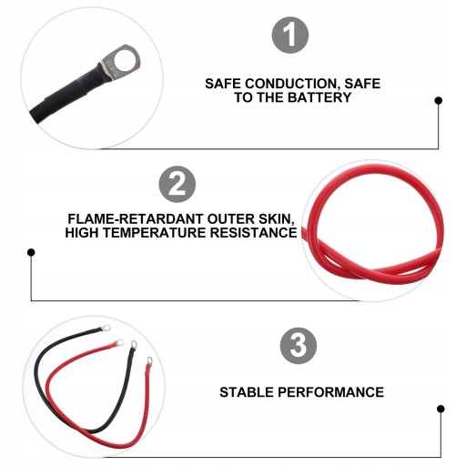 Te kable baterii (beztlenowej wysokiej przewodzących z miedzi) są wykonane z nici z miedzi i są pokryte trwały, odporny na wysoką temperaturę czerwonego izolacji. Zmaksymalizować moc każdego falownika. Mocy przetwornicy Kable są powszechnie wykorzystywane w zastosowaniach zasilania w Samochód. Świetnie nadają się również do mniejszych zastosowań kabli słonecznych.