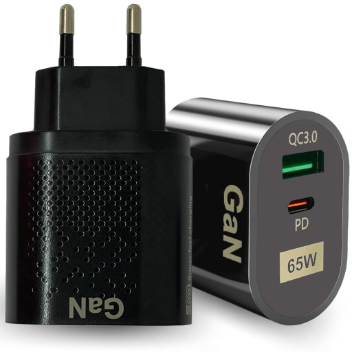 SZYBKA ŁADOWARKA SIECIOWA GaN 2x USB FAST 65W QC