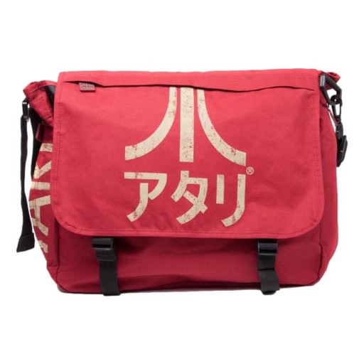 Ta czerwona torba Atari z japońskim logo, dwiema zewnętrznymi kieszeniami, wewnętrznym zamkiem błyskawicznym i dodatkowym, klasycznym logo umieszczonym na boku produktu, świetnie sprawdzi się na mieście i na uczelni.