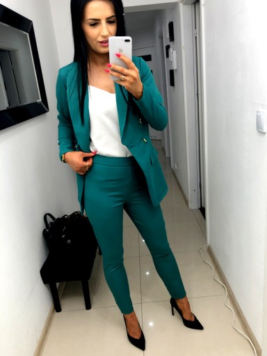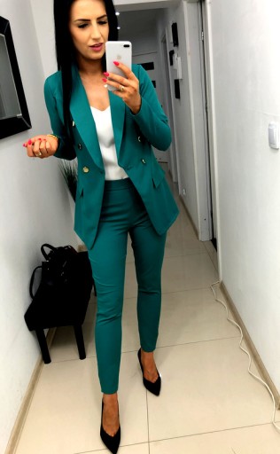 Женский костюм Женский костюм Комплект пиджака и брюк Зеленый 4XL 48