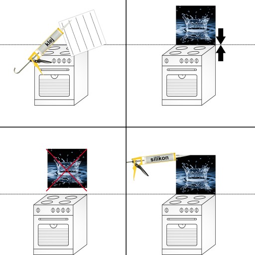 UWAGA: Panel należy przykleić opierając dolną krawędź na blacie lub kuchence.