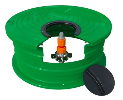 ➡️ pokrywa deszczowa z króćcem umożliwiającym pobór wody bez zdejmowania pokrywy,