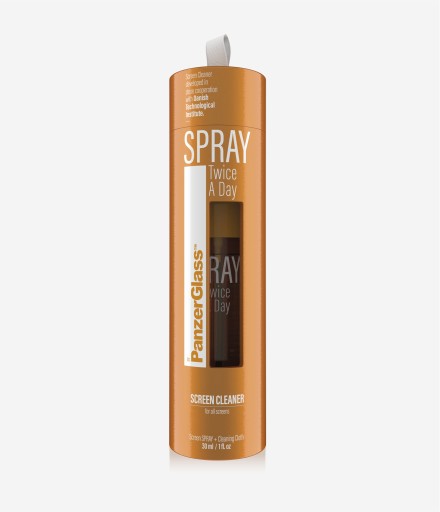 - W opakowaniu: PanzerGlass Spray 2 razy dziennie 30 ml + dwustronna ściereczka do czyszczenia/polerowania