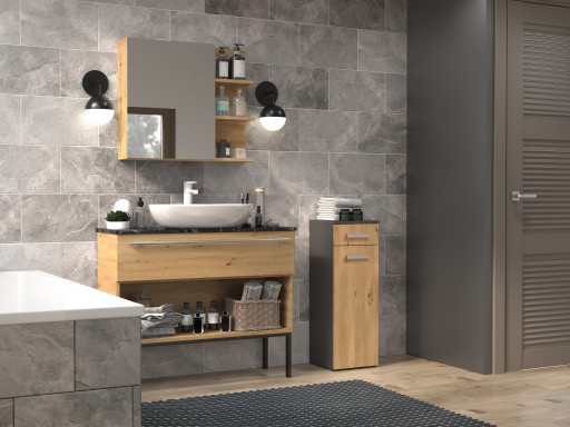 SZAFKA ŁAZIENKOWA PÓŁKA REGAŁ DĄB ARTISAN ANTRACYT