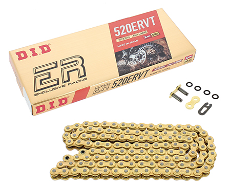 Łańcuch ERVT został zaprojektowany do długodystansowej jazdy Enduro w ciężkich warunkach. Jego wytrzymałość, niewielka masa i uszczelnienia typu X-RING sprawiają, że jest najlepszym łańcuchem wyścigowym do motocykli terenowych. Jego wąska konstrukcja sprawia że można go zamontować nawet do tych motocykli w których do tej pory można było stosować tylko łańuchy bezoringowe.