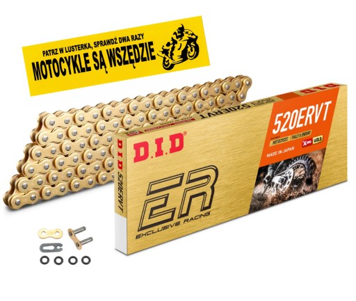 Łańcuchy D.I.D to produkty najwyższej jakości. Producent – japońska firma „DAIDO KOGYO” działa na rynku już przeszło 70 lat, specjalizując się w wytwarzaniu łańcuchów napędowych i rozrządu. Użytkownicy jednośladów na całym świecie dawno przekonali się o ich niezaprzeczalnych walorach i stosują je z powodzeniem zarówno w najcięższych motocyklach drogowych, jak też w wyczynowych pojazdach sportowych, crossowych i ATV. Szeroka oferta zróżnicowana jest pod względem wytrzymałości, zastosowania i ceny. Pozwala dobrać produkt najbardziej odpowiadający wymaganiom użytkownika.