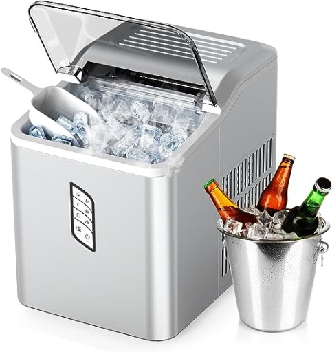 - 【Kompaktowy i przenośny】 Wymiary 20 x 30 x 30 cm, waży tylko 5 kg, można ją zabrać ze sobą do przyczepy kempingowej, pomieszczenia gospodarczego, garażu, przyczepy kempingowej, podwórka, łodzi lub wszędzie tam, gdzie potrzebujesz kostki lodu. Chłodzone potrawy, owoce, whisky, G&T, soki, limonki są dostępne Tobie i Twoim gościom przez cały dzień.