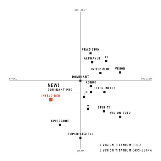 Zmniejszają napięcie całego instrumentu, przez co instrument staje się bardziej otwarty. Nadają się zarówno do starych, jak i nowych instrumentów. Relatywnie niewrażliwe na wysoką wilgotność powietrza. Poprzez optymalne zestawienie strun można wyeliminować w wielu instrumentach „wilki”. Dobra emisja dźwięku. Wysoka możliwość technicznego obciążenia w czasie gry przy jednoczesnym zachowaniu wrażliwości każdej ze strun. Zastosowanie od Fortissimo do Pianissimo