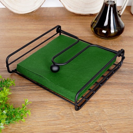 - Serwetnik z dociskaczem wykonany z solidnych materiałów. Odpowiednio użytkowany posłuży długie lata. Dzięki dociskaczowi możemy korzystać z niego również w ogrodzie, nie musimy obawiać się tego, że serwetki nam odfruną wraz z podmuchem wiatru. Stojak na serwetki prezentuje się bardzo elegancko, w całości utrzymany w modnym, czarnym kolorze.
