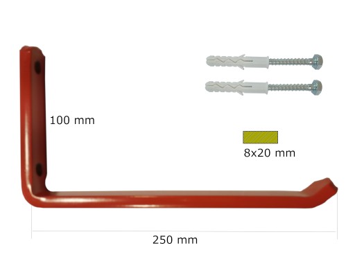 Wieszak ścienny 8x250R to prosty i popularny rodzaj wieszaka, który można zamontować na ścianie wewnątrz domu, w garażu lub na zewnątrz. Wieszak posiada ramię o długości 250 mm ale mogą mieć różne rozmiary i kształty, które umożliwiają zawieszenie różnych przedmiotów i narzędzi.