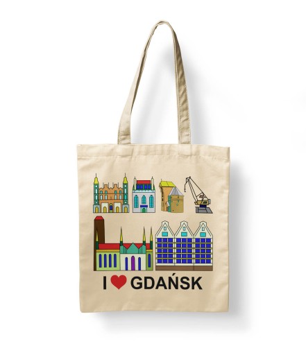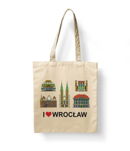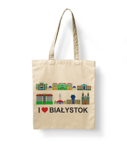 Ekologiczna torba bawełniana wykonana ze 100% bawełny najwyższej jakości, z nadrukiem charakterystycznych budynków w Krakowie, Katowicach, Białymstoku, Bydgoszczy, Gdyni, Gdańsku, Lublinie, Łodzi, Olsztynie, Poznaniu, Sopotu, Szczecinie, Toruniu, Warszawie, Wrocławiu...