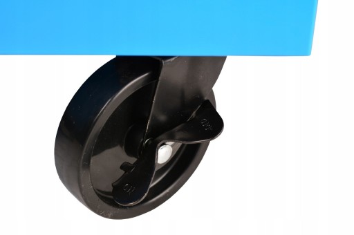 Dwa stałe koła szafki oraz dwa skrętne wyposażone w hamulec.