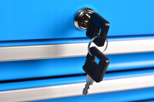 Szafka wyposażona jest centralny zamek zamykający wszystkie szuflady, w pełni wysuwane na łożyskach kulkowych.