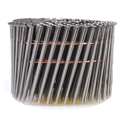 Gwoździe przeznaczone do gwoździarek bębnowych. Najbardziej popularne gwoździe w przemyśle drzewnym. Ilość gwoździ w jednym zwoju około 300 szt.,