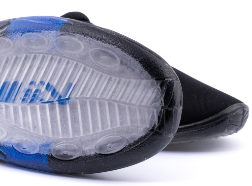 - Gumowa strukturalna podeszwa wykonana z materiału TPR- jest całkowicie antypoślizgowa, chroni przed skaleczeniem stopy, otarciem i zapewnia doskonałą przyczepność na mokrym i śliskim podłożu.