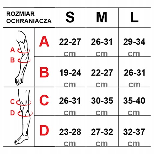 - Zestaw 3- częściowy: zawiera ochraniacze na nadgarstki, łokcie i kolana