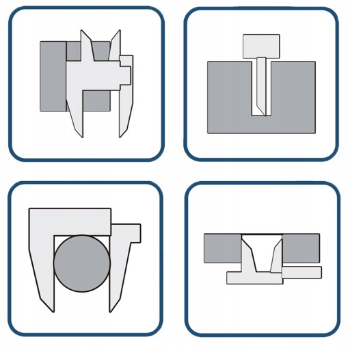 - Rodzaje pomiaru: Wewnętrzny, zewnętrzny, głębokościowy