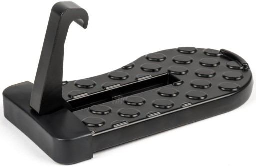 - Uniwersalny, aluminiowy podest samochodowy, który został zaprojektowany jako dodatkowy stopień ułatwiający dostęp do dachu pojazdu. Montaż tego podestu jest prosty i wygodny, nie wymaga inwazyjnych działań. Można go zamontować na elemencie zamka drzwi w karoserii samochodu, a specjalna pianka na uchwycie chroni karoserię przed zarysowaniami.