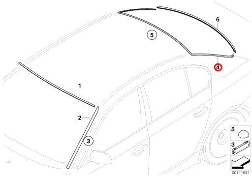 OE BMW 5 E60 ПРОКЛАДКА ВЕРХНЕГО ЗАДНЕГО СТЕКЛА