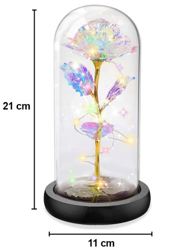 ➡️Oferowana przez nas wieczna róża pod kloszem jest otoczona lampkami LED, zapewniającymi piękne podświetlenie. Dzięki pozostawieniu róży na komodzie czy nocnym stoliku uzyskasz magiczną atmosferę, która za każdym razem przywoła miłe wspomnienia.
