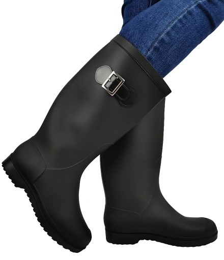 Długie Damskie Kalosze gumowce lekkie wygodne Czarny mat Pikowane