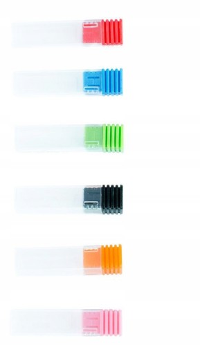 Wszystkie frezy mają oznaczenia w różnych kolorach, które oznaczają gradację.