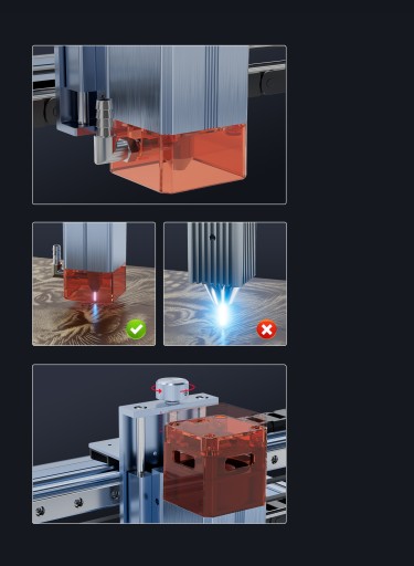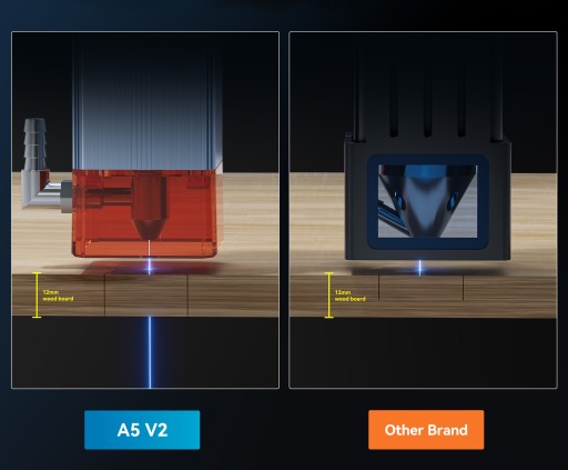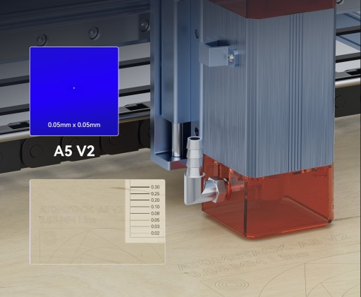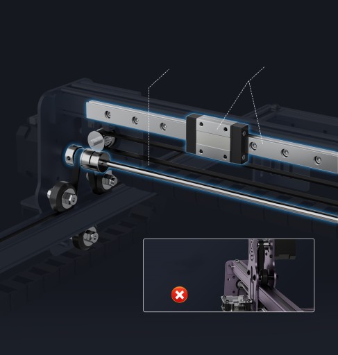 Całkowicie nowy projekt liniowej szyny ślizgowej + łańcuch zbiornika został przyjęty w celu zwiększenia dokładności konstrukcyjnej i optymalizacji układu wiązki przewodów, poprawiając w ten sposób dokładność i stabilność produktu. Zmniejsza również hałas i wibracje maszyny. A5 V2 wykorzystuje integralną śrubę zamiast kombinowanego sprzęgła wału. Silnik krokowy i śruba są integralne, co sprawia, że ruch lasera jest bardziej precyzyjny, a sprzęgło trwalsze.