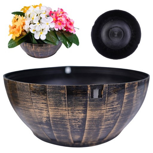 ☀️ OZDOBNA DONICZKA DO KOMPOZYCJI KWIATOWYCH - OKRĄGŁA - CZARNO-ZŁOTA - 17 cm
