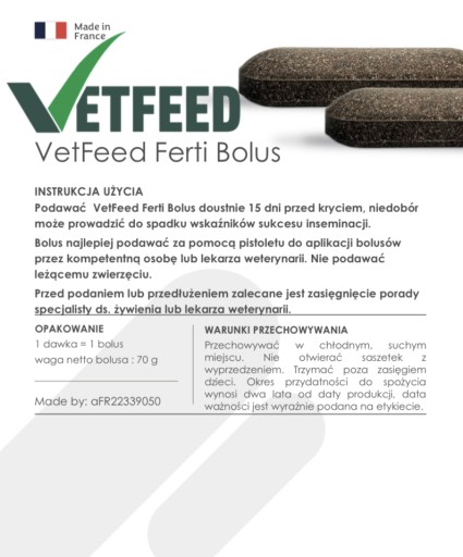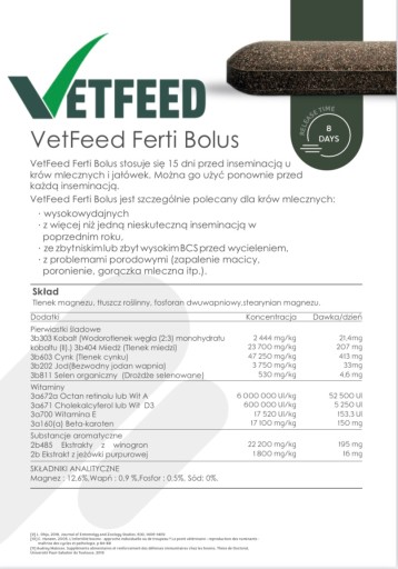 Opakowanie 12 unikalnych bolusów wspierających rozród u krów.