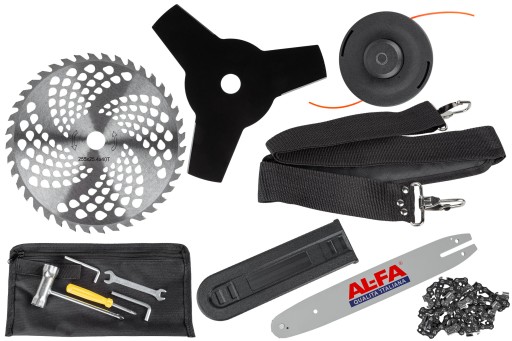 - Przystawka z piłą łańcuchowa (prowadnica 14") + osłona piły