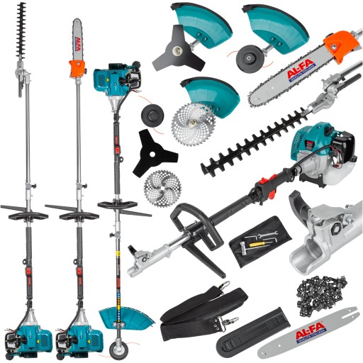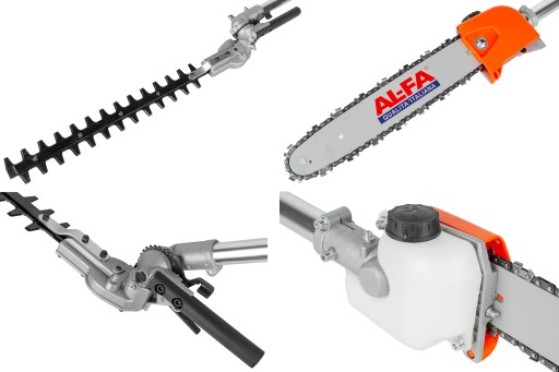 Kosa, podkaszarka, piła łańcuchowa i nożyce do żywopłotu w jednym urządzeniu zapewniają wszechstronne zastosowanie.