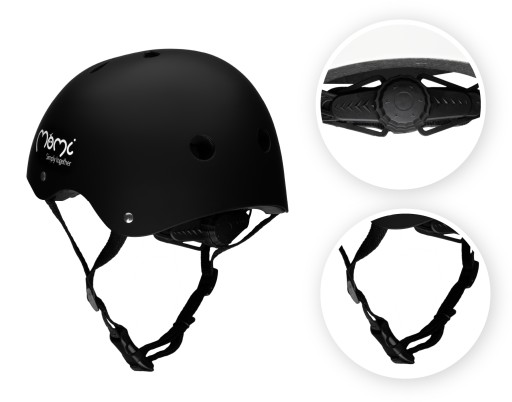 - Kask powinien dokładnie przylegać do głowy. Zmierz obwód głowy dziecka i dopasuj odpowiedni rozmiar. Twoje dziecko rośnie i jego potrzeby zmieniają się z miesiąca na miesiąc, wybierz więc praktyczny kask z regulacją obwodu. Zakres dostosowania w MoMi MIMI to aż od 47 do 58 cm.