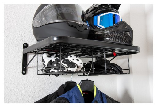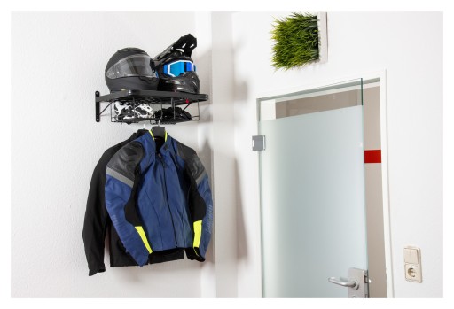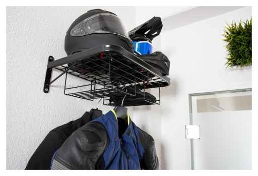 Gdzie upchnąć ciężkie wyposażenie motocyklowe? Rozwiązanie problemu: garderoba Louis Biker *Duo*. Stabilna, wykonana z solidnej stali, zapewnia komfortową ilość miejsca na dwa kaski, dwie kurtki lub kombinezony. A dwa podwieszone schowki na rękawice możesz również wykorzystać do przechowywania dwóch par rękawic.