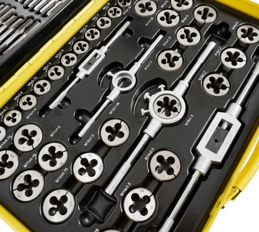 Profesjonalne gwintowniki i narzynki wykonane z doskonałego materiału. Zestaw zawiera 110 elementów. Zapakowany w wygodną walizkę, która pozawala utrzymać porządek, łatwo transportować zestaw i błyskawicznie odnaleźć potrzebny w danej chwili element. Zestaw służy do naprawy połączeń gwintowych różnego kalibru.