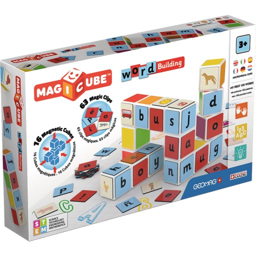 Poznajcie siłę przyciągania. Najmłodsi mogą sprawdzić jak działa niewidzialna siła magnetyzmu poprzez zabawę Magicube. Dodatkowo dzięki nakładkom magnetycznym, które łączą się z klockami dzieci mogą tworzyć swoje pierwsze słowa. Poznawanie alfabetu i nauka czytania nigdy nie była przyjemniejsza! Dodatkowo niektóre nakładki posiadają także obrazki, dzięki którym możecie tworzyć różne historie w trakcie łączenia elementów. Magicube od Geomag to duże klocki tworzone z wysokiej jakości materiałów. Konstrukcja tych kolorowych klocków jest bardzo mocna, a nakładki magnetyczne umożliwiają naukę przez zabawę. Zawartość pudełka 16 kolorowych klocków magnetycznych 63 magnetyczne nakładki Instrukcja Wiek: 3+.