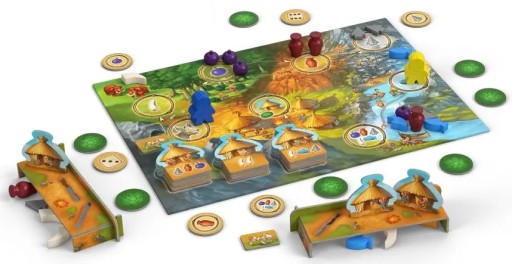 1 krásně ilustrovaný herní plán 4 vesnice 35 žetonů 24 velkých dřevěných figurek a surovin česká a slovenská pravidla hry