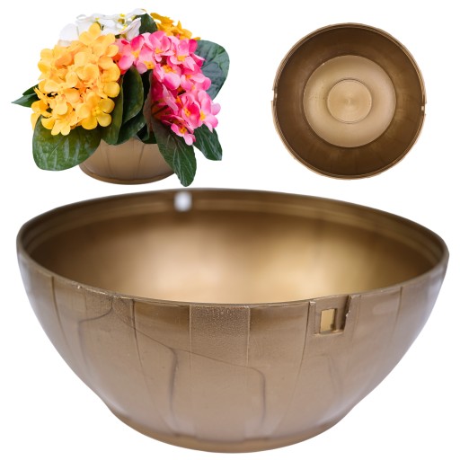 ☀️ OZDOBNA DONICZKA DO KOMPOZYCJI KWIATOWYCH - OKRĄGŁA - ZŁOTA - 17 cm