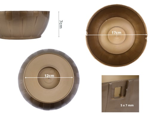 - Okrągła doniczka jest stworzona specjalnie jako baza do stroików, idealna do aranżacji na grobie, w domu lub w miejscach publicznych.