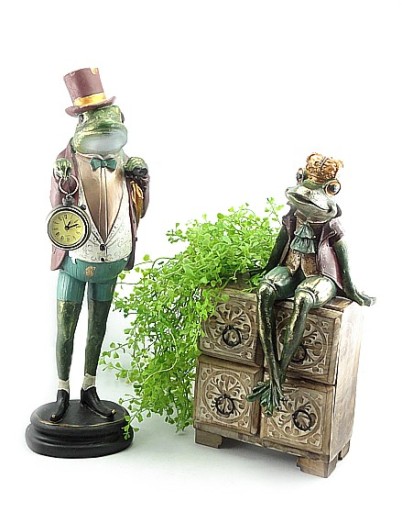 Żaboty pod szyją oraz stylowy cylinderek w dłoni tworzą wyrafinowaną i niezwykle urokliwą figurkę.