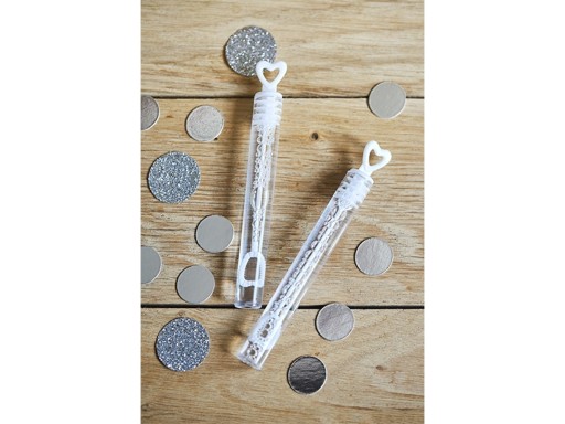 Bańki mydlane to doskonały dodatek na Twoje wymarzone wesele! Z naszą buteleczką baniek Serduszko białe otrzymasz aż 48 gotowych do użycia bańek mydlanych z płynem.