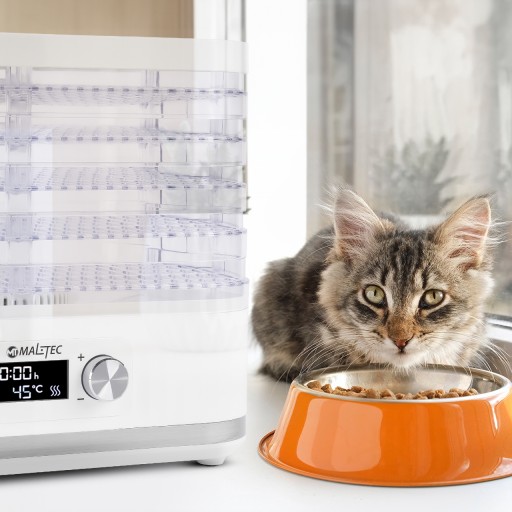 Nowoczesny wyświetlacz LED i 8-stopniowa regulacja temperatury umożliwiają idealne dopasowanie do rodzaju suszonej żywności.
