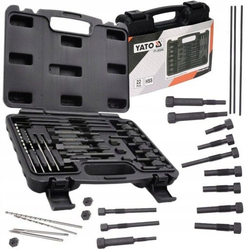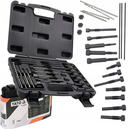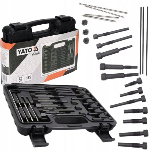- Zawartość zestawu: gwintownik x5 (M8x1.0 mm, M10x1.0 mm, M10x1.25 mm, M3x0.5 mm z nakrętką 100 mm, M4x0.7 mm z nakrętką 100 mm)|wiertło specjalne x2 (2.5x120 mm, 3.3x140 mm)|śruba ściągacza L=180 mm