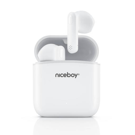 - W zestawie: Słuchawki Niceboy BEANS, Kabel ładujący USB-C, Etui ładujące, Zapasowe gumki douszne, Instrukcja obsługi
